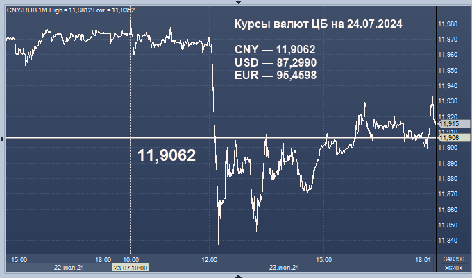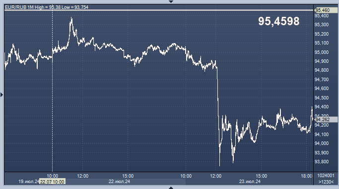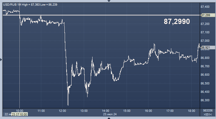 Таким образом, по официальному курсу ЦБ доллар упал к рублю на 49 копеек, евро упал к рублю на 30 копеек, а китайский юань упал к рублю на 7 копеек по сравнению с официальным курсом вторника. Объем торгов на Московской бирже к 18:35 мск вторника составил 702,9461 млрд рублей или 8 007,9985 млн долларов.