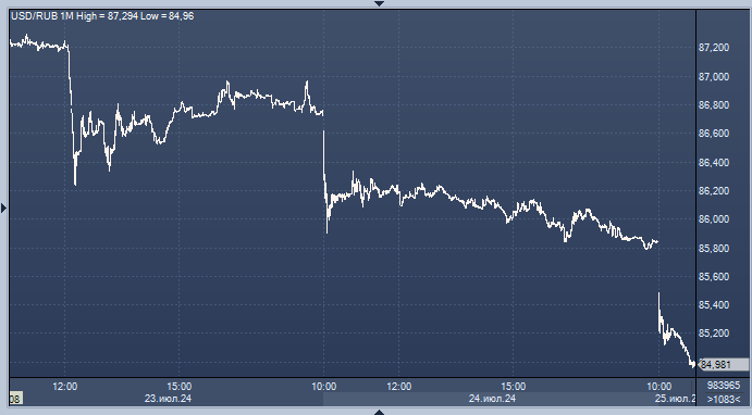Рубль продолжает ралли перед заседанием Банка России по ключевой ставке и перед единым днем уплаты налогов в июле. Позитивное влияние на курс рубля продолжают оказывать ожидания повышения ключевой ставки на заседании Банка России в пятницу, 26 июля, и подготовка экспортеров к налоговым выплатам. В понедельник, 29 июля, им предстоит перечислить в бюджет НДФЛ, налог на прибыль, НДПИ, НДС, страховые взносы, акцизы и НДД.