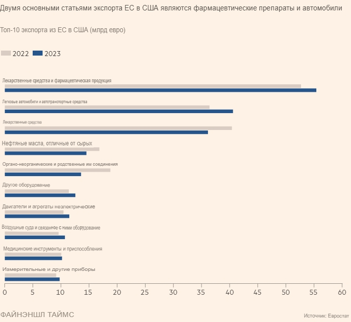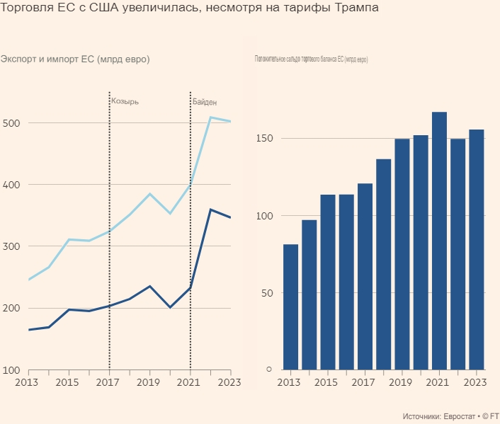 Первый срок Трампа с 2017 по 2021 год был болезненным для ЕС, который имеет значительное положительное сальдо в торговле товарами с США.