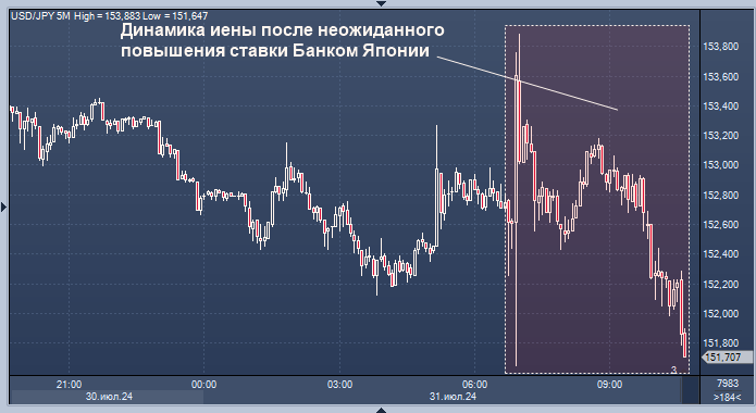 На двухдневном заседании, завершившемся в среду, совет директоров Банка Японии принял решение повысить целевую ставку овернайт до 0,25 % с 0-0,1 %, проголосовав 7-2.