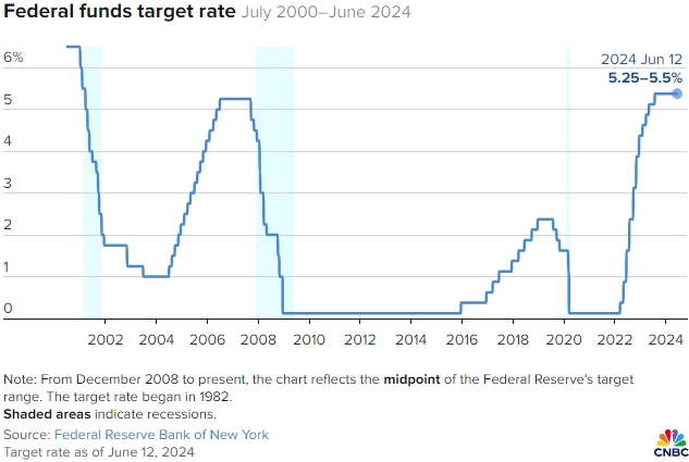 «Недавние комментарии чиновников ФРС… предполагают, что они сохранят паузу на своем заседании [на этой] неделе, но приблизились к первому снижению процентной ставки», — говорится в записке Мерикла. «Главная причина, по которой FOMC приближается к снижению, — это благоприятные новости об инфляции за май и июнь».