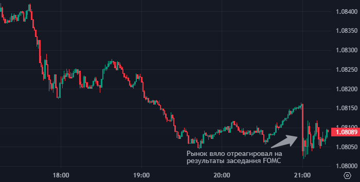 Рынок фьючерсов на ставку по федеральным фондам вяло отреагировал на результаты заседания FOMC. Перед их объявлением в ценах закладывалось снижение ставки к концу года с текущих уровней на 68 б.п., а через 15 минут после — на 66 б.п.