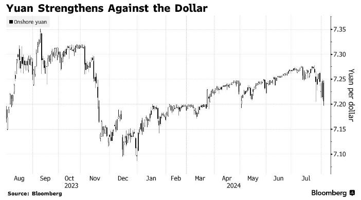 Эта стратегия, известная как carry trade, и опасения по поводу вялой экономики Китая помогли подтолкнуть юань к самому низкому с октября уровню в прошлом месяце. Настроения изменились в конце июля, когда резкий рост соседней иены и ожидания того, что Федеральная резервная система США приближается к повороту монетарной политики, придали импульс.