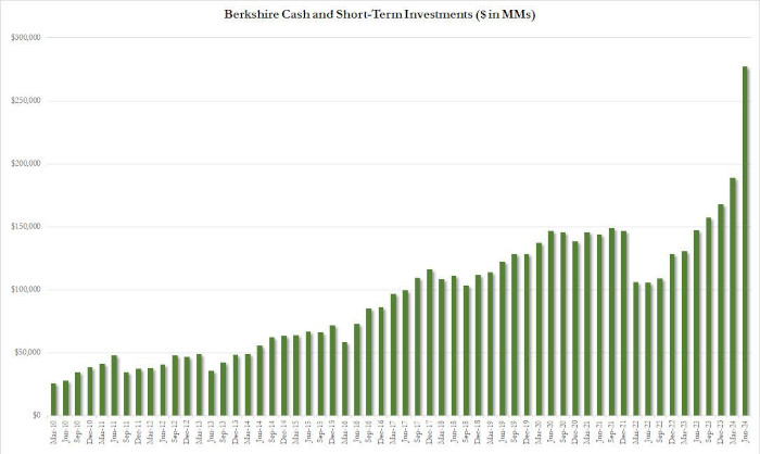 Объем наличных в портфеле Berkshire Hathaway в млн USD. Источник: Zerohedge