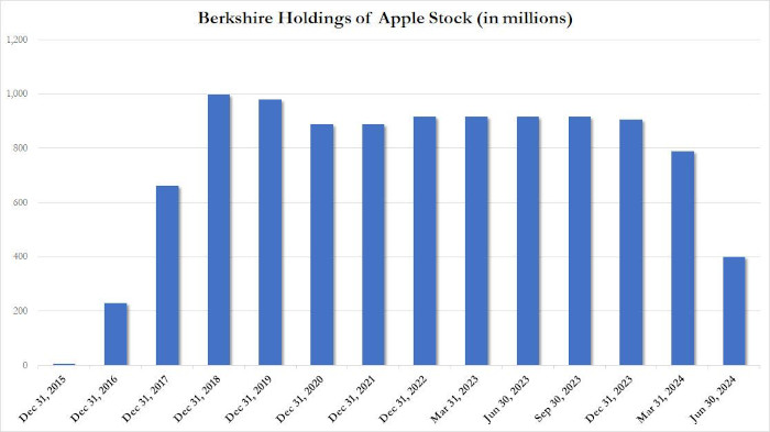 Число акций Apple в портфеле Berkshire Hathaway. Источник: Zerohedge