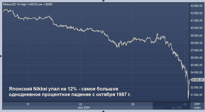 «Рынки переживают крах, и по всему миру разливается красное море". Стремительное движение иены оказывает понижательное давление на японские акции, но оно также приводит к развороту крупных сделок carry trade - инвесторы использовали заемные средства в иенах для покупки других активов, в основном акций американских технологических компаний.