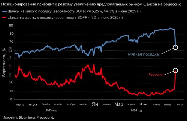 Прежние опасения по поводу риска усиления инфляции практически исчезли, быстро уступив место спекуляциям о том, что рост экономики остановится, если центральный банк не начнет снижать процентные ставки с более чем двухдесятилетнего максимума. Теперь трейдеры считают, что вероятность экстренного снижения ставки на четверть пункта в течение одной недели составляет около 60%, пишет Bloomberg.