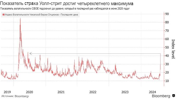 Индикатор страха Уолл-стрит, VIX, торгуется на уровнях, не наблюдавшихся с июня 2020 года, в то время как такие активы-убежища, как казначейские облигации и иена, стали бенефициарами этой паники.