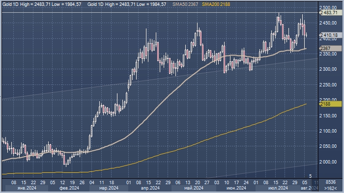 На спот-рынке золото подешевело на 3,2% в ходе предыдущей сессии, что стало крупнейшим внутридневным падением с начала июня. Внутридневные колебания составляли более 90 долларов, поскольку акции и сырьевые товары накрыла сильная волна продаж.
