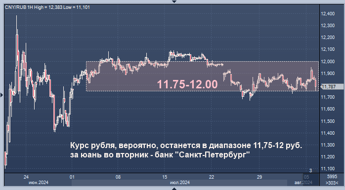 Курс валютной пары юань/рубль, вероятно, останется в диапазоне 11,75-12 руб. за юань с перспективой движения к его нижней границе во второй половине текущей недели после фактического увеличения продаж юаней Банком России, говорится в обзоре аналитиков банка "Санкт-Петербург".