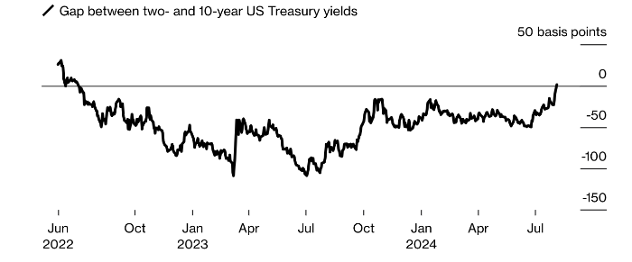 Эксперты и все вокруг призывают Федеральную резервную систему начать снижение процентных ставок — возможно, как утверждали некоторые, даже до следующего запланированного на сентябрь заседания по вопросам денежно-кредитной политики. На рынке облигаций стремление к краткосрочным казначейским облигациям кратковременно привело к тому, что доходность двухлетних облигаций стала ниже, чем доходность десятилетних облигаций, впервые за более чем два года. Это явление, известное как дезинверсия, вернуло кривую доходности к ее обычной форме — сдвиг, который обычно рассматривается как признак надвигающейся рецессии.