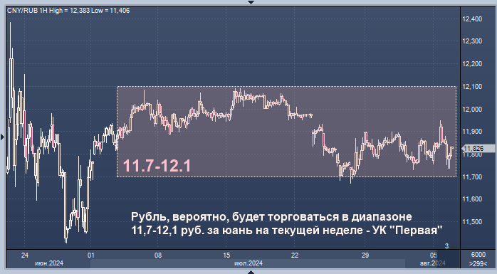 Курс пары юань/рубль, вероятно, будет находиться в диапазоне 11,7-12,1 руб. за юань на текущей неделе, курс пары доллар/рубль - в коридоре 85,5-87,5 руб./$1, полагают аналитики Управляющей компании "Первая".