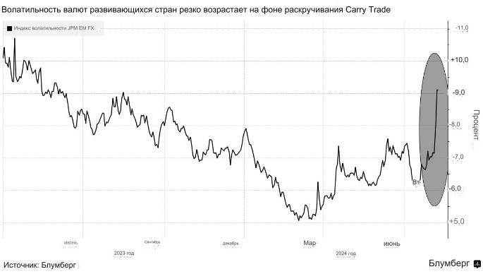 Последовавшее за этим поспешное закрытие коротких позиций по иене всколыхнуло как развивающиеся, так и развитые рынки, на которых инвесторы, использующие эту стратегию в поисках более высокой доходности, обычно останавливали свой взор. Мексиканский песо, одна из крупнейших жертв сворачивания этой торговли, во вторник продолжил падение, и его потери достигли 6,8% за последний месяц, что является самым большим показателем среди основных мировых валют, отслеживаемых Bloomberg.