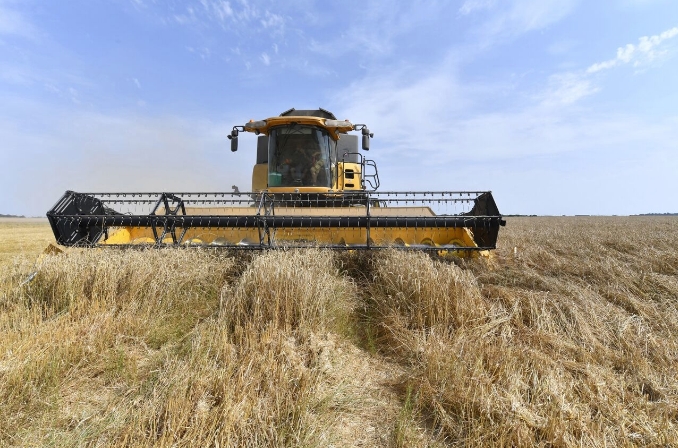Комбайн на поле в Илье-Комбре, Франция. Фотограф: Jean-Francois Monier/AFP/Getty Images