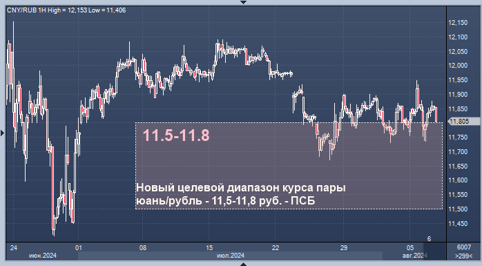 Увеличение чистых продаж юаней Банком России усиливает риски укрепления рубля, новый целевой диапазон для курса валютной пары составляет 11,5-11,8 руб. за юань, считает начальник отдела экономического и отраслевого анализа Промсвязьбанка (ПСБ) Евгений Локтюхов.