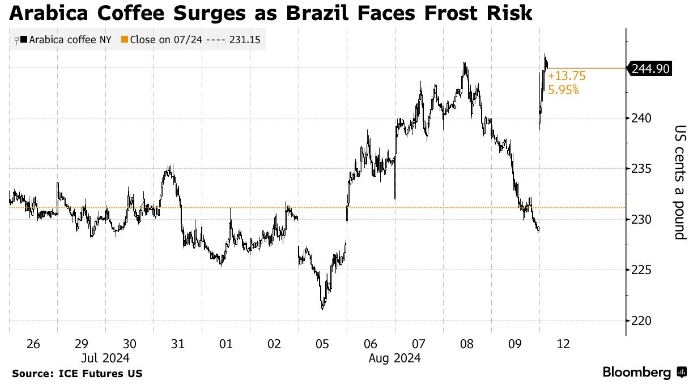 Заморозки усугубят стресс, вызванный засушливой погодой в Бразилии, которая уже угрожает нанести ущерб урожаю следующего года. По словам Джудит Ганес, президента нью-йоркской компании J. Ganes Consulting, любой дождь перед заморозками может спровоцировать преждевременное цветение, которое может прерваться, если не будет последующих ливней.