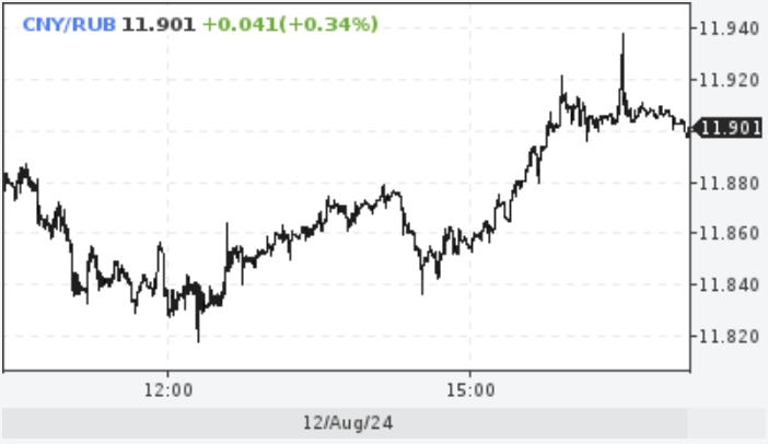 Китайский юань дешевеет на Московской бирже днем в понедельник. Рубль повышается на фоне активно дорожающей нефти. Торги долларом и евро не проводятся на Московской бирже с 13 июня из-за санкций. В связи с этим наиболее подходящими ориентирами колебаний курса (в том числе для внебиржевого рынка) являются котировки однодневного фьючерсного контракта с автопролонгацией на курс "доллар США - российский рубль" (USDRUBF) и такого же контракта на курс "евро - российский рубль"