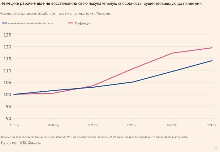 Спокойствие ЕЦБ перед лицом роста зарплат объясняется убежденностью в том, что работники все еще "наверстывают упущенное" после того, как их покупательная способность была подорвана инфляцией. Даже с учетом 5,6-процентного повышения заработной платы в этом году, только половина потерь немецких рабочих в период с 2021 по 2023 год была компенсирована.