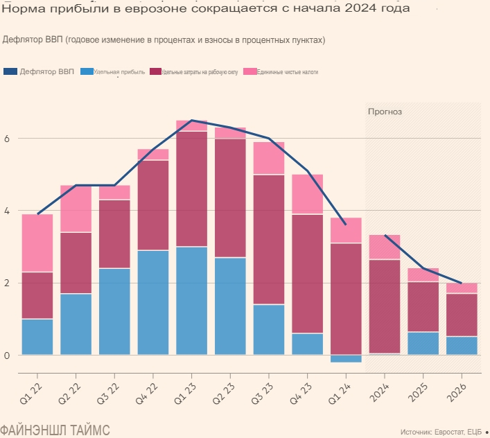 "Особое внимание ЕЦБ уделяет вопросу о том, в какой степени нормы прибыли поглощают рост удельных затрат на рабочую силу", - сказал Фредерик Дюкрозе, глава отдела макроэкономических исследований Pictet Wealth Management.