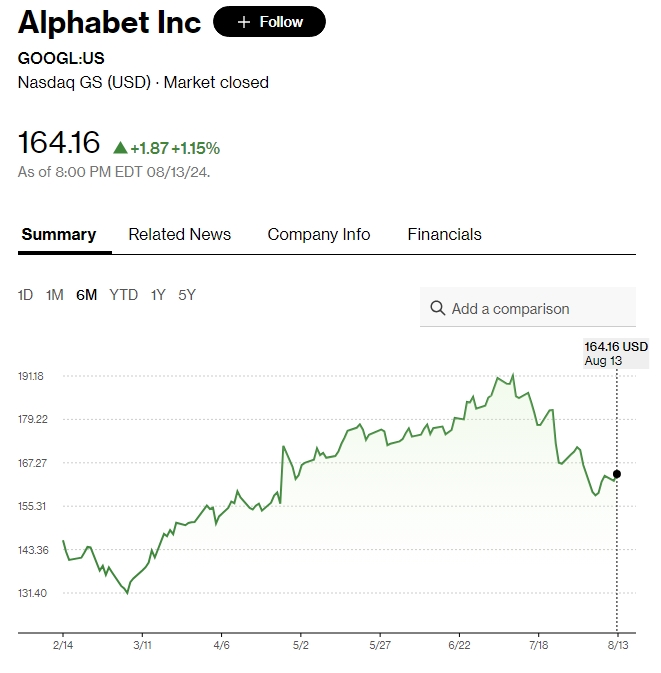 Акции Alphabet упали на 1,4% до $161,95 на предварительных торгах в среду.