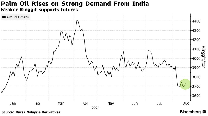 Пальмовое масло растет второй день благодаря высокому спросу со стороны крупнейшего в мире покупателя, Индии, и ослаблению малазийской валюты, что сделало тропическое масло более привлекательным для зарубежных покупателей.