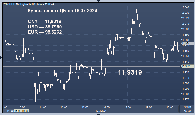 Китайский юань слабо укрепляется на Московской бирже днем в четверг, рубль дешевеет в рамках коррекции после сильного роста по итогам предыдущих торгов. Торги долларом и евро не проводятся на Московской бирже с 13 июня из-за санкций. В связи с этим наиболее подходящими ориентирами колебаний курса (в том числе для внебиржевого рынка) являются котировки однодневного фьючерсного контракта с автопролонгацией на курс "доллар США - российский рубль" (USDRUBF) и такого же контракта на курс "евро - российский рубль" (EURRUBF).
