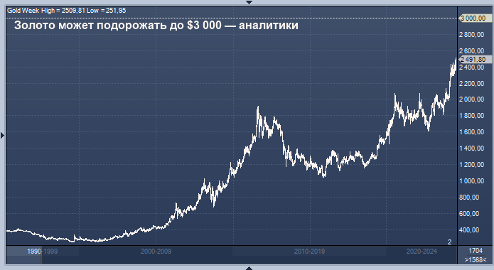 Цены на золото достигли новых максимумов, и аналитики ожидают новых рекордов. Некоторые прогнозируют, что в следующем году цена на металл достигнет $3 000 за унцию, поскольку приближается заседание Федеральной резервной системы США.