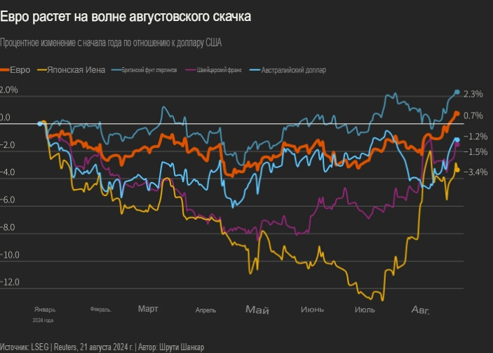 Иена нестабильна после масштабного сворачивания операций carry trade. В августе стерлинг подешевел после снижения ставки в Великобритании, а французские политические риски, которые в июне нанесли ущерб евро, ослабли.