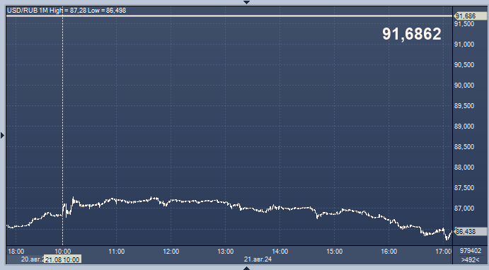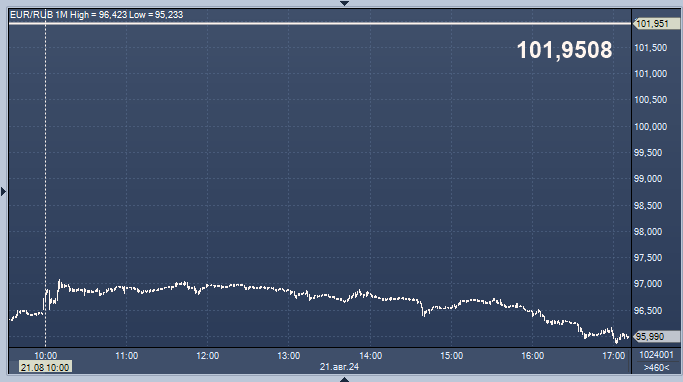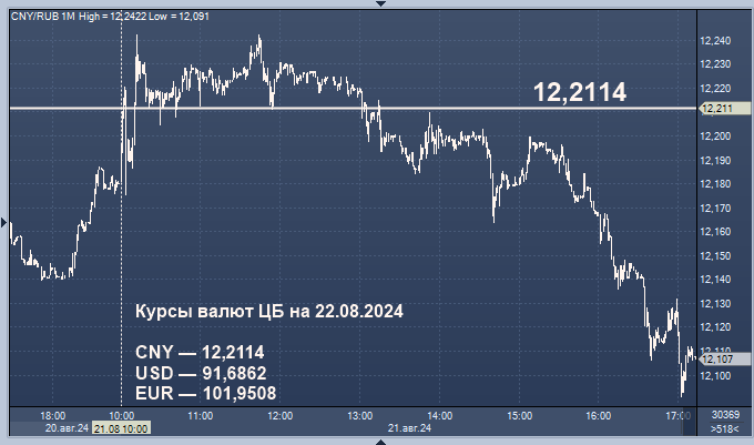 Китайский юань растерял рост первой половины сессии и немного дешевеет на Московской бирже днем в среду; рубль отыграл утренние потери и слегка повышается на фоне попыток нефти развернуться вверх после снижения по итогам двух предыдущих дней, пишет Интерфакс. Торги долларом и евро не проводятся на Московской бирже с 13 июня из-за санкций. В связи с этим наиболее подходящими ориентирами колебаний курса (в том числе для внебиржевого рынка) являются котировки однодневного фьючерсного контракта с автопролонгацией на курс "доллар США - российский рубль" (USDRUBF) и такого же контракта на курс "евро - российский рубль" (EURRUBF).