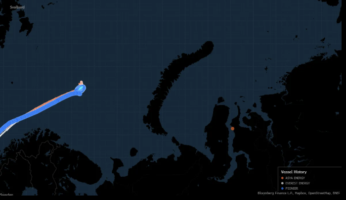 Танкер Everest Energy, который предположительно входит в состав так называемого теневого флота, собранного Москвой для доставки газа покупателям, остановился в Баренцевом море к северо-востоку от Норвегии. Об этом свидетельствуют данные согласно данным отслеживания судов, собранным Bloomberg.