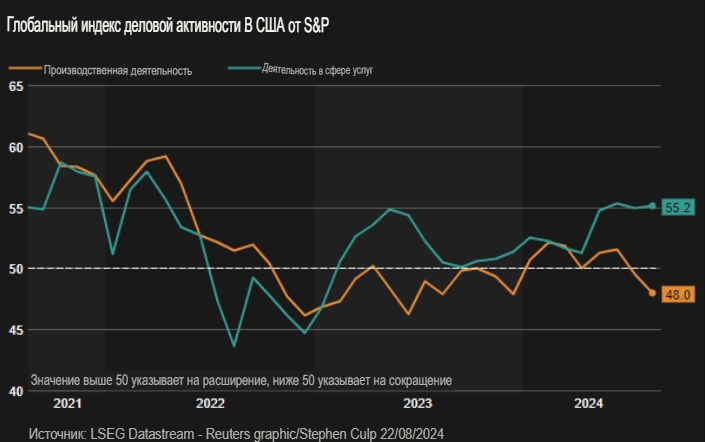 Последние августовские опросы деловой активности в США подчеркнули отсутствие срочности, поскольку они превзошли прогнозы, в основном благодаря активным ответам компаний сектора услуг. Продажи домов в июле также превзошли ожидания.
