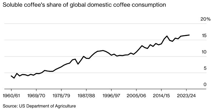 Доля растворимого кофе в мировом потреблении. Источник: Bloomberg