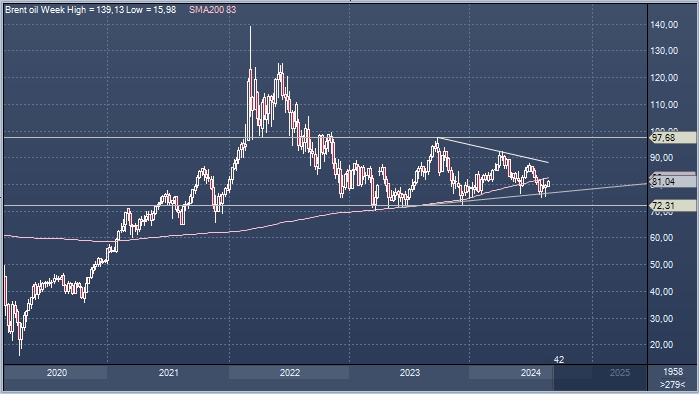 График нефти Brent интервалами в 1 неделю