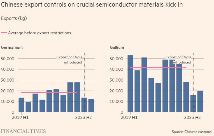 Эти два материала необходимы для производства передовых микропроцессоров, волоконно-оптических изделий и приборов ночного видения, поэтому дальнейшее ограничение экспорта со стороны Пекина может нарушить производство таких товаров.
