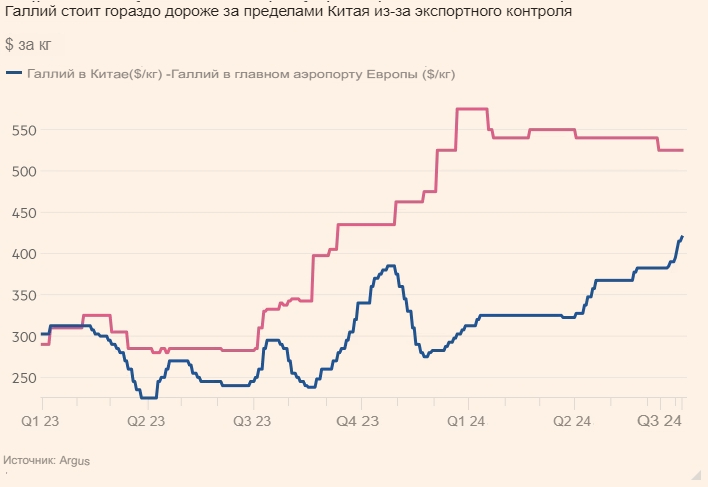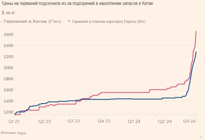 Ограничения Пекина на поставки германия и галлия, которые используются для производства полупроводников и компонентов военного и коммуникационного оборудования, привели к почти двукратному росту цен на эти минералы в Европе за последний год.
