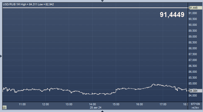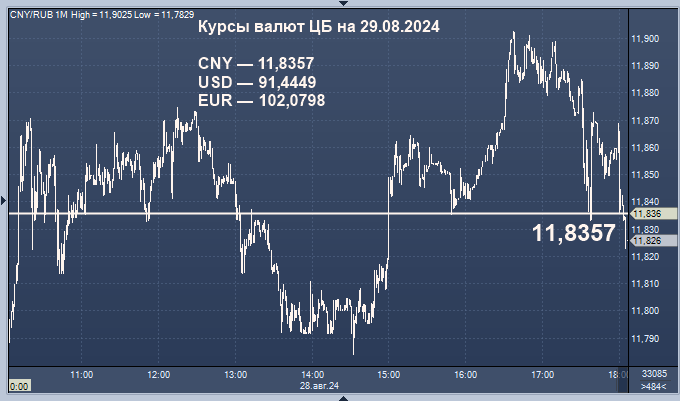 Китайский юань повышается на Московской бирже днем. Рубль перешел к снижению после нескольких дней роста, так как компании-экспортеры в основном завершили подготовку к завтрашнему перечислению в бюджет налоговых выплат. Единый день уплаты налогов в этом месяце приходится на среду, 28 августа, пишет Интерфакс. Торги долларом и евро не проводятся на Московской бирже с 13 июня из-за санкций. В связи с этим наиболее подходящими ориентирами колебаний курса (в том числе для внебиржевого рынка) являются котировки однодневного фьючерсного контракта с автопролонгацией на курс "доллар США - российский рубль" (USDRUBF) и такого же контракта на курс "евро - российский рубль" (EURRUBF).