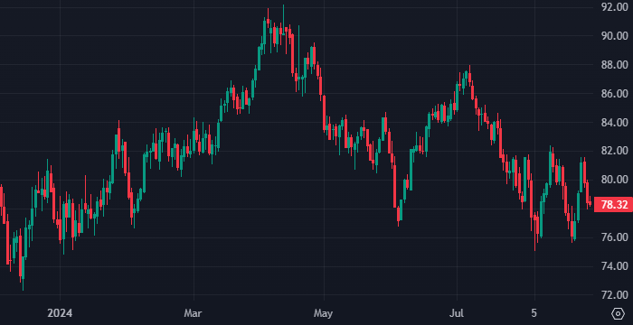 Цена нефти Brent интервалами 1 день