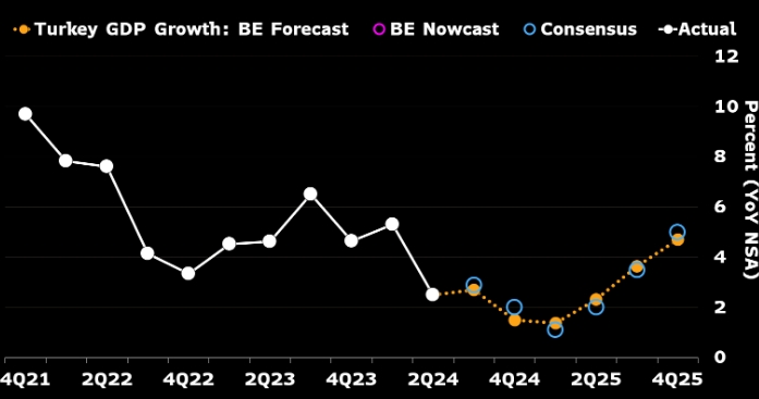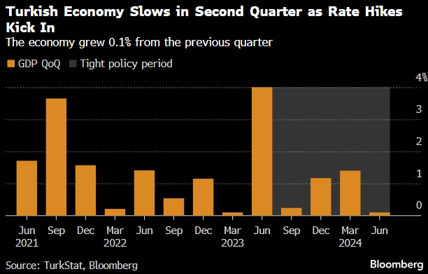 Рост в предшествующий период по март был обусловлен внутренним спросом с подъемом минимальной заработной платы и ожиданиями более высоких цен, подпитывающих потребление. Центральный банк повысил свою базовую ставку почти в шесть раз до 50% с прошлого года, чтобы обуздать расходы домохозяйств и замедлить инфляцию, которая в настоящее время превышает 60%.