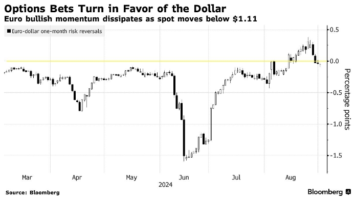 Рост евро уже сходит на нет. В понедельник он упал до $1,1042, самого низкого значения с 19 августа, после взлета до годового максимума в $1,1202 на прошлой неделе. Возможное улучшение данных по занятости в США, которое должны выйти в конце этой недели, может усилить понижательное давление, поскольку это смягчит ожидания агрессивного снижения ставок Федеральной резервной системы в ближайшие месяцы, что уже оказало давление на доллар.