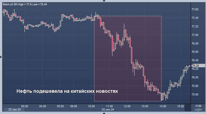 Фьючерсы на нефть марки Brent подешевели на 1,66 доллара, или на 2,1%, до 75,86 доллара за баррель к 12:00 по Гринвичу.