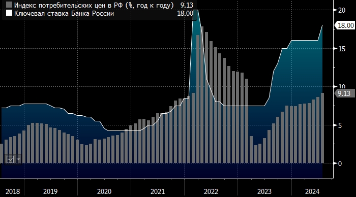 ЦБ РФ, скорее всего, сохранит ключевую ставку на уровне 18% в сентябре, говорится в комментарии Райффайзенбанка.