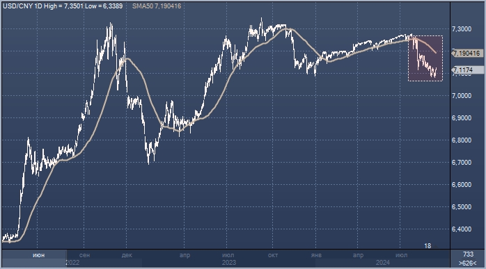 Иностранные активы китайских компаний оказались в центре внимания на фоне ожиданий, что более низкие процентные ставки в США вернут часть этих инвестиций домой. Растет скептицизм относительно масштабов этого спада, учитывая экономические проблемы Китая, риск более высоких пошлин и все еще большой разрыв в доходности с США, что предполагает небольшой потенциал роста для юаня.