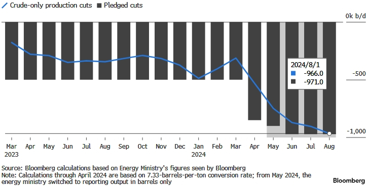 Россия, крупнейший производитель сырой нефти в ОПЕК+, также была одним из главных отстающих в группе в реализации соглашения о поставках, которое призвано поддержать мировые цены. Власти РФ пообещали сделать дополнительные сокращения, чтобы компенсировать перепроизводство предыдущих месяцев.