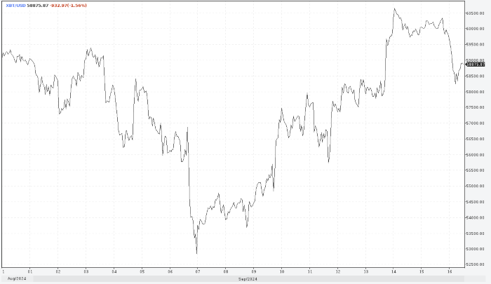 Падение биткоина последовало за ростом на 10% за семь дней, что стало самым большим недельным ралли с июля — этот рост, возможно, закладывает в цены снижение ставки ФРС на 50 базисных пунктов. Ожидается, что чиновники снизят стоимость заимствований как минимум на 25 базисных пунктов на предстоящем заседании.
