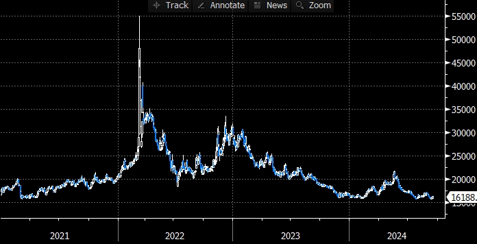 Цена никеля на Лондонской бирже после комментариев российского лидера вернулась выше 16000 долларов за тонну, но не поднималась выше 17000/тонна и продолжается оставаться вблизи 16000, угрожая снова оказаться ниже этой отметки.