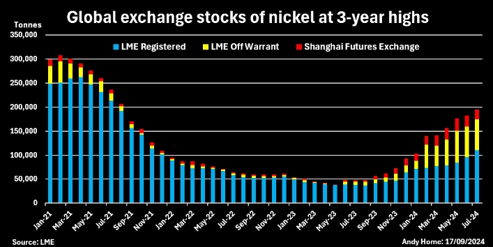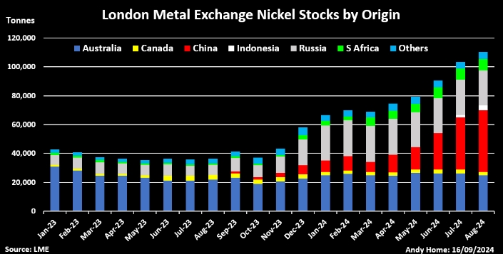 Первый индонезийский металл также начал поступать на склады LME после майского листинга марки «DX-zwdx», производимой PT CNGR Ding Xing New Energy. На конец августа было зарегистрировано 3186 тонн индонезийского металла.