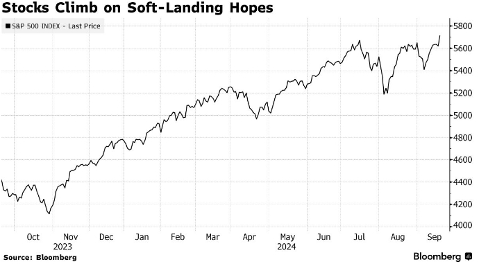 В четверг индекс S&P 500 закрылся на рекордно высоком уровне, поскольку инвесторы сделали ставку на то, что резкое снижение процентной ставки Федеральной резервной системой на полпункта поможет обеспечить мягкую посадку для экономики США.