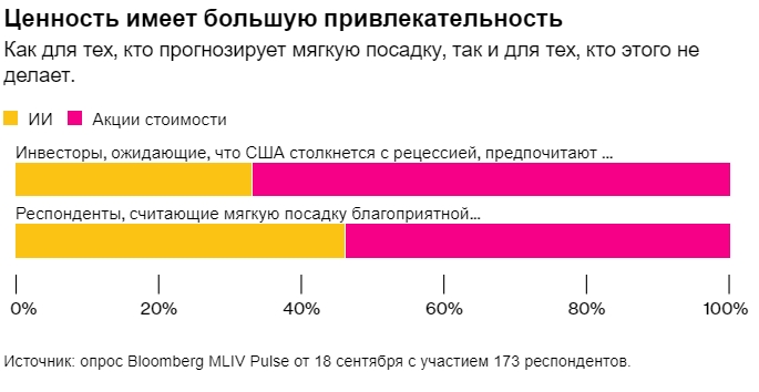 Ценность имеет большую привлекательность. Как для тех, кто прогнозирует мягкую посадку, так и для тех, кто этого не делает. Источник: опрос Bloomberg MLIV Pulse от 18 сентября с участием 173 респондентов.