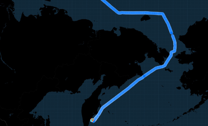 Маршрут судна Everest Energy от «Арктик СПГ-2» до плавучего газохранилища «Коряк ПХГ» на Камчатке. Источник: Bloomberg