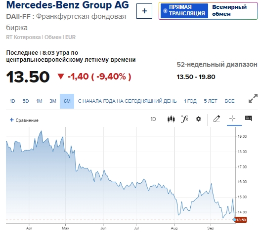Пересмотр показателей Mercedes был вызван «дальнейшим ухудшением макроэкономической ситуации», в первую очередь из-за снижения уровня потребления в Китае и продолжительного спада в секторе недвижимости страны, говорится в заявлении компании, опубликованном в четверг.